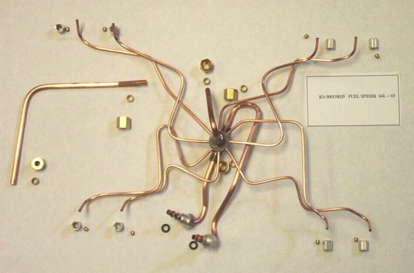 To prevent assembly and operational problems caused by other tube connections and contaminated tubing, a complete set of fuel supply, return, and bypass ('65) are supplied in with each spider. Because of variations between these connecting tubes and between tubes of prior years a standard set of tubes are included with each the new spider kit. A set of connecting tubes are available separately, but a spider is not available without the connecting tubes kits.